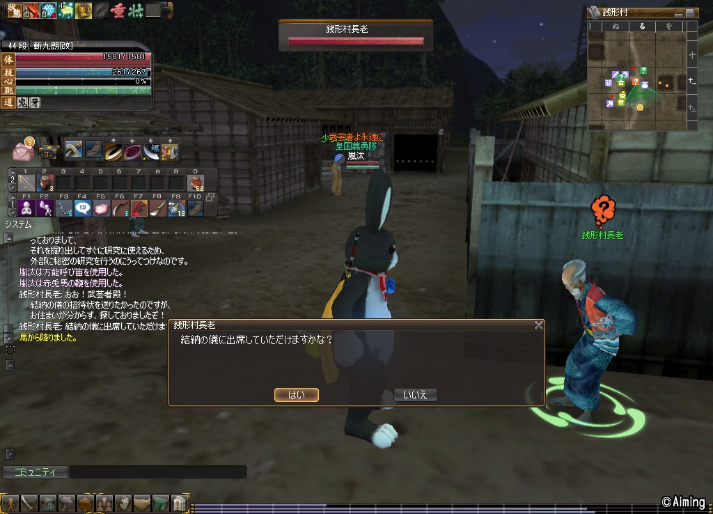 そして天蚕の森で天蚕を狩って繭を集めた後、金鵄の止まり木へ移動して銭形村へ戻されます。