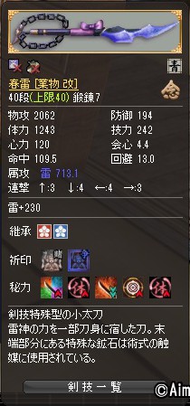 最近育成中の壮武器です。