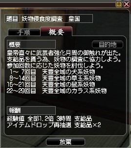 ・・・とまあこのような流れで一回はそれほど手間掛かりませんが、任務を遂行する回数が問題ですね。