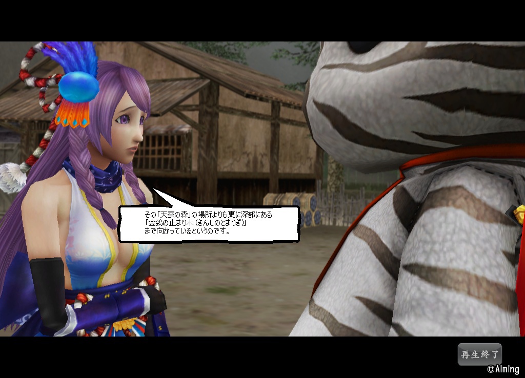 そして天蚕の森で天蚕を狩って繭を集めた後、金鵄の止まり木へ移動して銭形村へ戻されます。