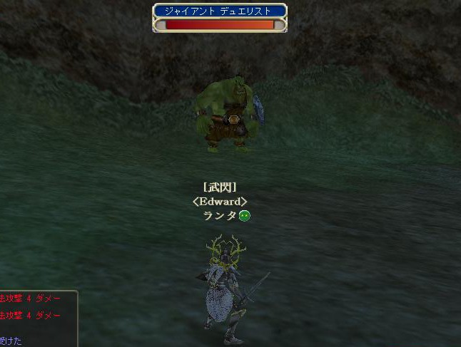 シップ専用装備を手に入れるため、ジャイアントデュエリストに対し「1人で」「累計して一定のダメージを与える」クエストに挑戦。累計と言うのは死んだりエリアチェンジしてもカウントされるのだそうです。