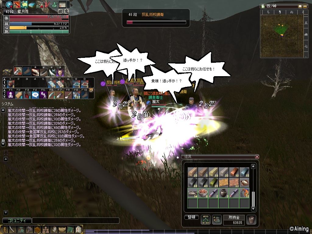 02:10:47 敵PC(戦闘) バッジオの攻撃→背面攻撃!嵐汰に167のダメージ。