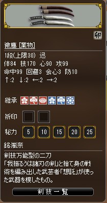 業物生産確率1.5倍ということでしたが、個人的には実感できず業物は凛津と微塵が一本づつという残念な結果でした。