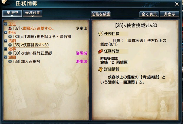クエストクリア目的で活劇「青城突破」を「普通」より高い難度である「侠客」に挑んで見ました。