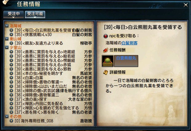 LV37-39までのクエを消化せず溜め込んでいた図。