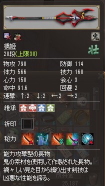 刀の性能としては攻撃力自体は高いですが、連撃が少なめなので剣技で戦って行くタイプと言った所でしょうか。