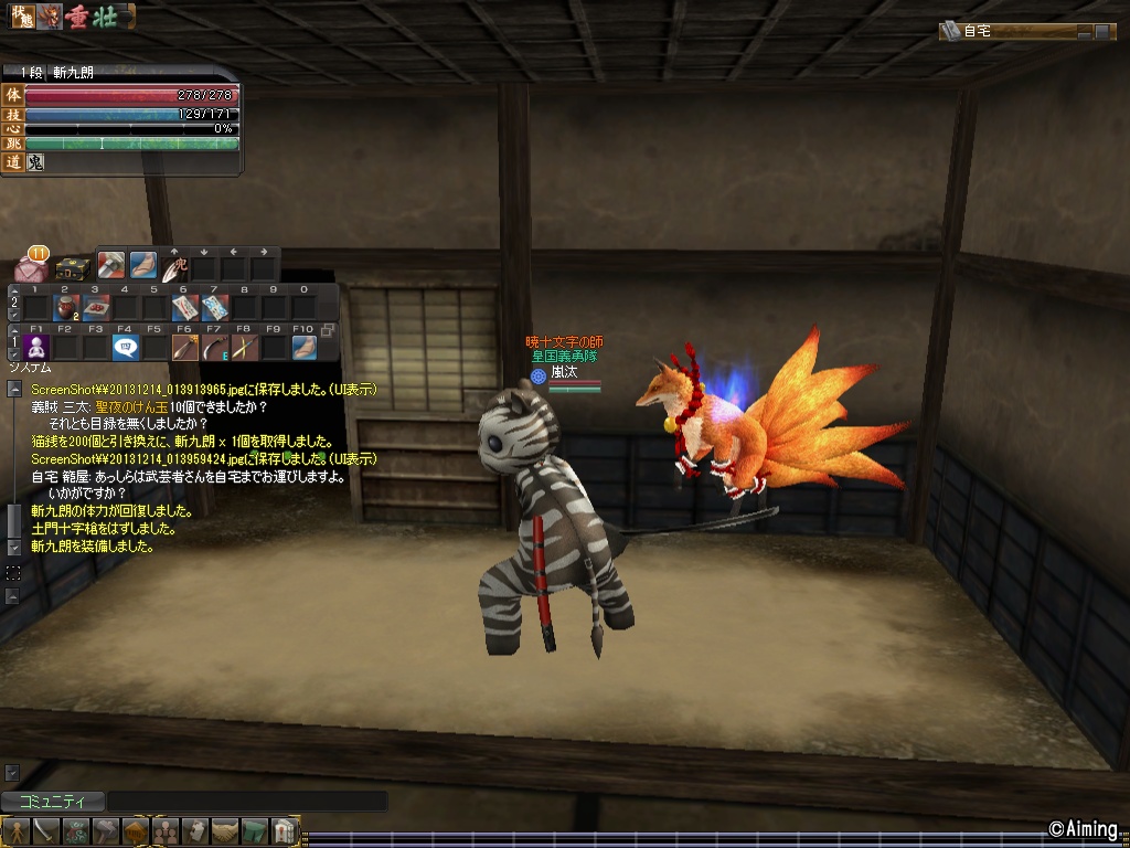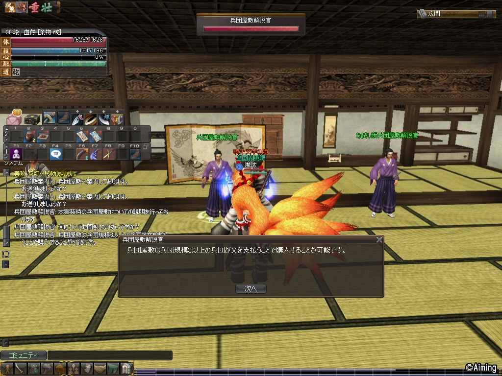 猫銭武器二本ありますので猫銭はもうそれほど必要でありませんし、土門十字槍に極拡も積んでいるなど諸々で臨戦態勢は整ってますので、アップデートがあればすぐ合戦に戻れます。