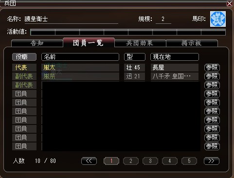こちらが実質護皇衛士の後継兵団と言えますが、現在の所合戦は美鈴村限定なので団員は募集していません。