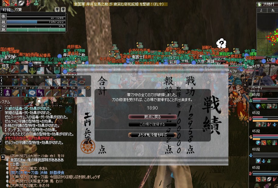 そうなると政府は佐倉、森母で出来なくなった事を渋柿でやるのでは無いかと思いますが、案の定やっているようですね。あくまでINした時にゲージを見ての推測ですが。くれぐれも皇国の武芸者は渋柿村合戦の際は注意して頂きたい物です。