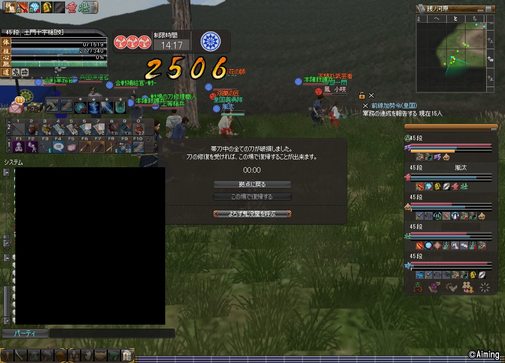 個人的に唯一まともに勝てる2時合戦でも勝てなくなったので、終いには合戦中でも離脱して落ちることもありました。眠気を我慢してまで合戦する意味が無いわけですので。