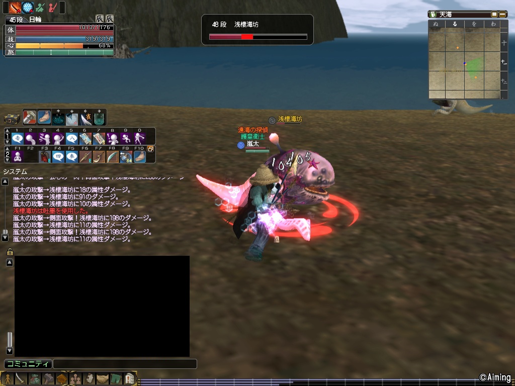 クラゲより攻撃は少し厳しい印象ですが、日輪で道は出るので狩りやすいです。