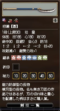 暴鳥やクエで経験値稼いでいるうちに、初瀬戦刃が40段になったので詰所で蒼にしました。