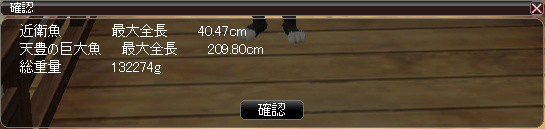 主の200cm超えが釣れたので、とりあえず巨大魚部門の景品(古銭)貰えると思っていたら巨大魚部門ランキング15位と言う大物でした。