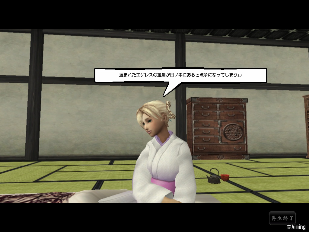 会議の内容を要約すると、エゲレス人であるアリスが日ノ本人を襲ったのでそれを材料にエゲレスと交渉し戦を有利に進めようと言う話し合いの模様で聖剣編完となりました。