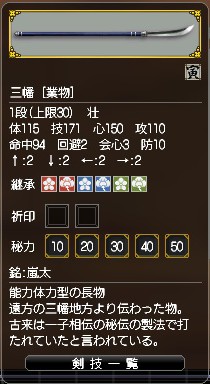 三幡業物がそろそろ30段開放する程度の段になったので、開放する前に癒拡を継承することに。